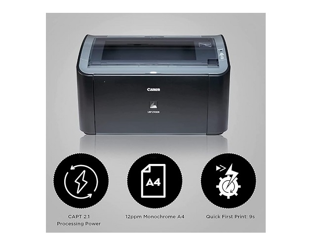 Canon | USB | Laser | Single Function |Black | Model Name Laser Shot LBP2900B | Printer Output Monochrome | Maximum Print Speed (Colour) 12 ppm | Max Print speed of Monochrome 25 ppm | Weight is 8 Kilograms