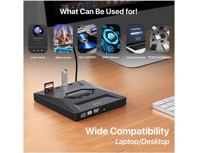 - Multifunctional External Drive: Combines a CD/DVD reader and writer with USB SD/TF card reader ports and a USB-C hub, making it the perfect companion for laptops, PCs, and desktops.
